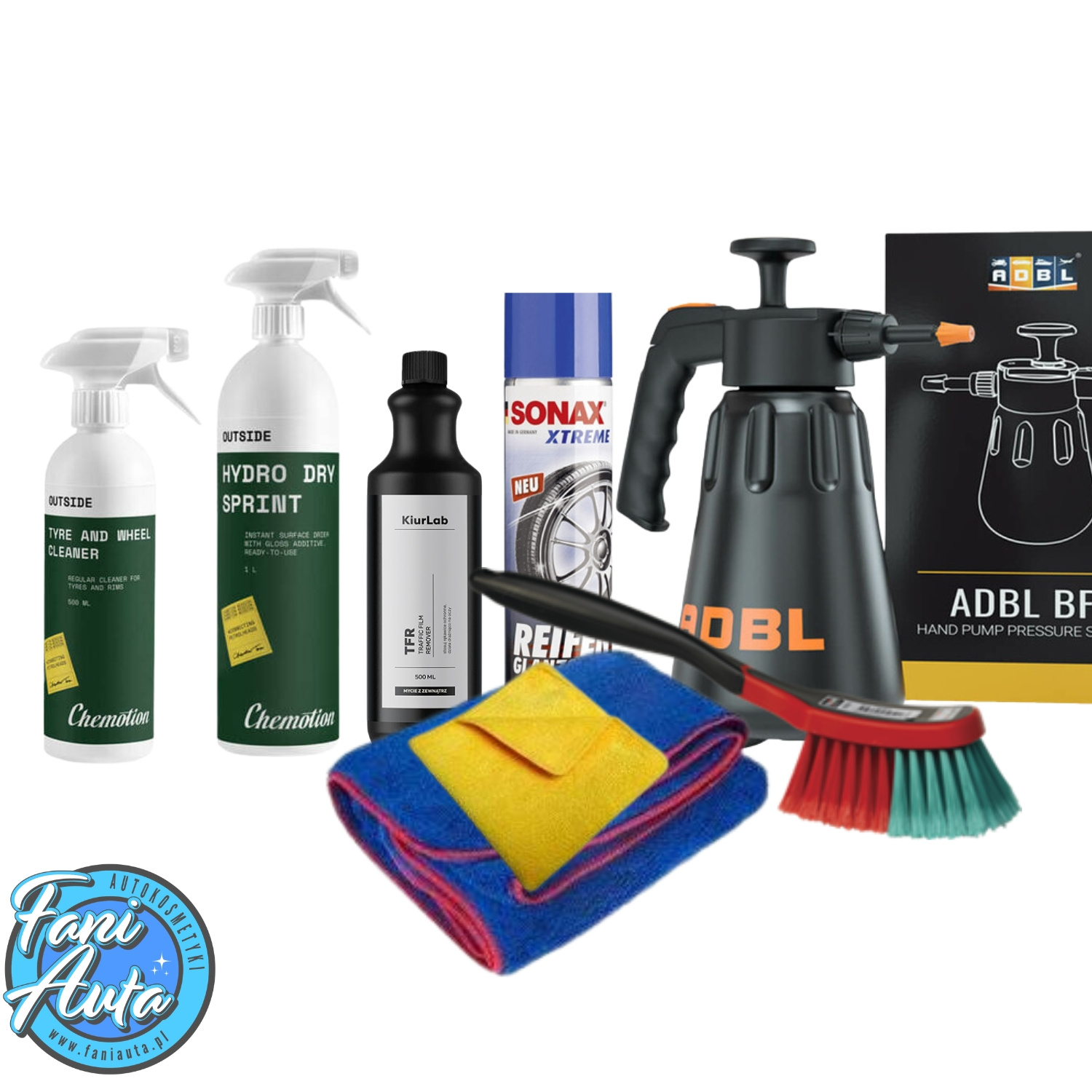 - Pielęgnacja felg: Wykorzystaj Tyre & Wheel Cleaner oraz szczotkę Vikan do czyszczenia felg.