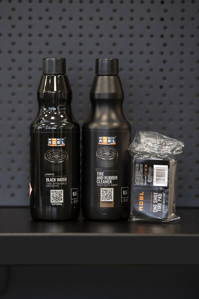 Zestaw został specjalnie zaprojektowany, aby kompleksowo zadbać o opony i elementy gumowe Twojego samochodu. Składa się z trzech produktów: ADBL Black Water, ADBL Tire & Rubber Cleaner oraz ADBL One Shot Tire Pad.