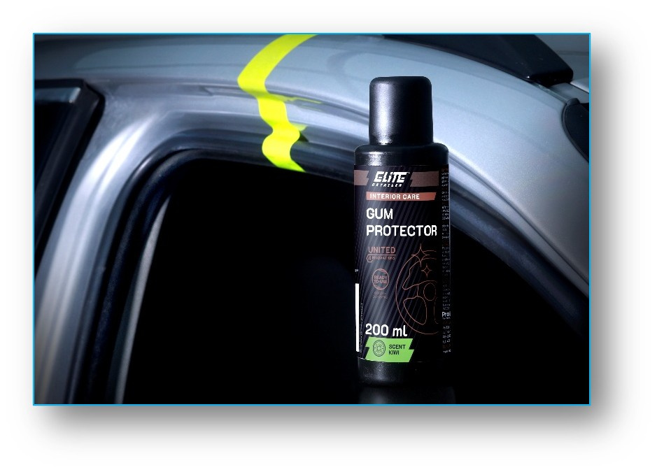 - Elite Detailer Gum Protector to preparat do pielęgnacji uszczelek. Chroni przed pękaniem i przymarzaniem, nawilża i ułatwia aplikację dzięki aplikatorowi. Pachnie kiwi.