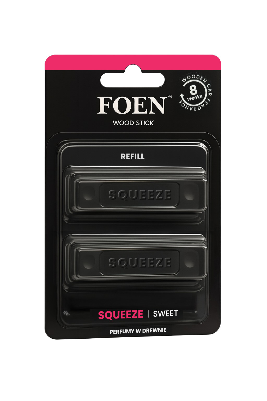 - Foen Wood Stick Squeeze to świeże perfumy samochodowe w drewnianej formie o cytrusowo-owocowym aromacie z delikatną nutą wanilii. Naturalny design idealnie komponuje się z wnętrzem auta, a zapach utrzymuje się nawet do 8 tygodni.