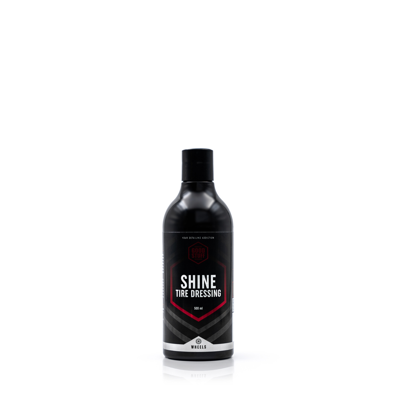 - Good Stuff Tire Dressing Shine to dressing do opon, który nadaje połysk, chroni przed promieniami UV i wodą. Zapewnia efekt hydrofobowy i utrzymuje się do 2–3 tygodni.