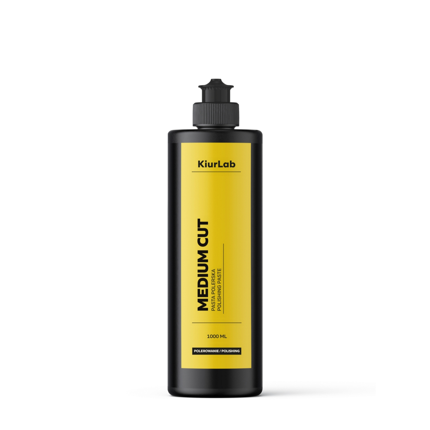 • KiurLab Medium Cut / One Step to uniwersalna pasta polerska do szybkiej korekty lakieru. Skutecznie usuwa rysy i zmatowienia, nadając wysoki połysk w jednym etapie. Nie pyli, łatwo się dociera i jest bezpieczna dla wszystkich rodzajów lakieru.