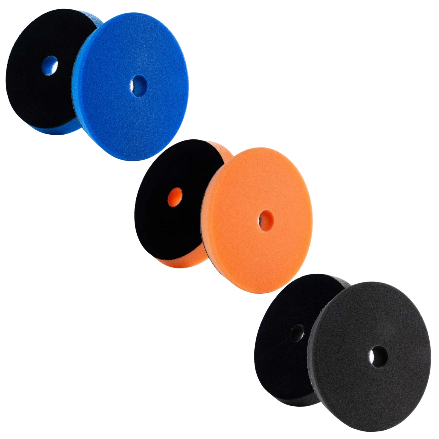 Zestaw gąbek polerskich Lake Country SDO 140 mm został zaprojektowany z myślą o efektywnej i bezpiecznej pracy z maszynami typu Dual Action. W komplecie znajdują się trzy pady o różnej twardości: twardy, średni i miękki, co pozwala na kompleksowe wykonanie korekty lakieru – od cięcia, przez polishing, aż po wykończenie.