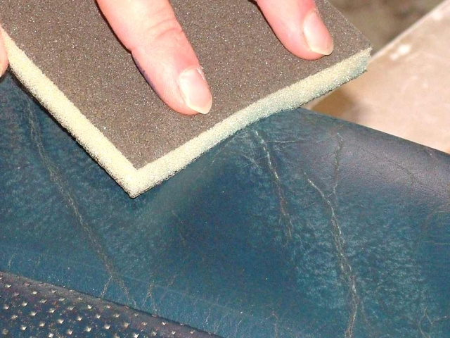 - Pad szlifujący na gąbce do skóry to praktyczne akcesorium do przygotowania tapicerki przed malowaniem i renowacją. Bezpieczny w użyciu, skutecznie matowi powierzchnię, zapewniając idealne podłoże pod dalsze prace.