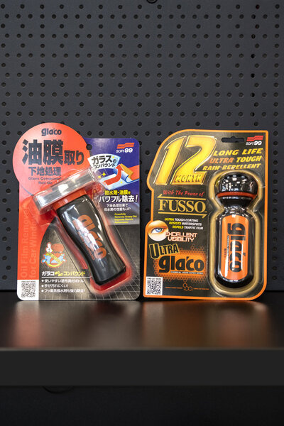 - Zestaw SOFT99 ULTRA GLACO + GLACO GLASS COMPOUND ROLL ON - ZESTAW - dzięki niemu usuniesz z szyby uporczywe ślady kamienia z szyb oraz zabezpieczysz je na długi czas.