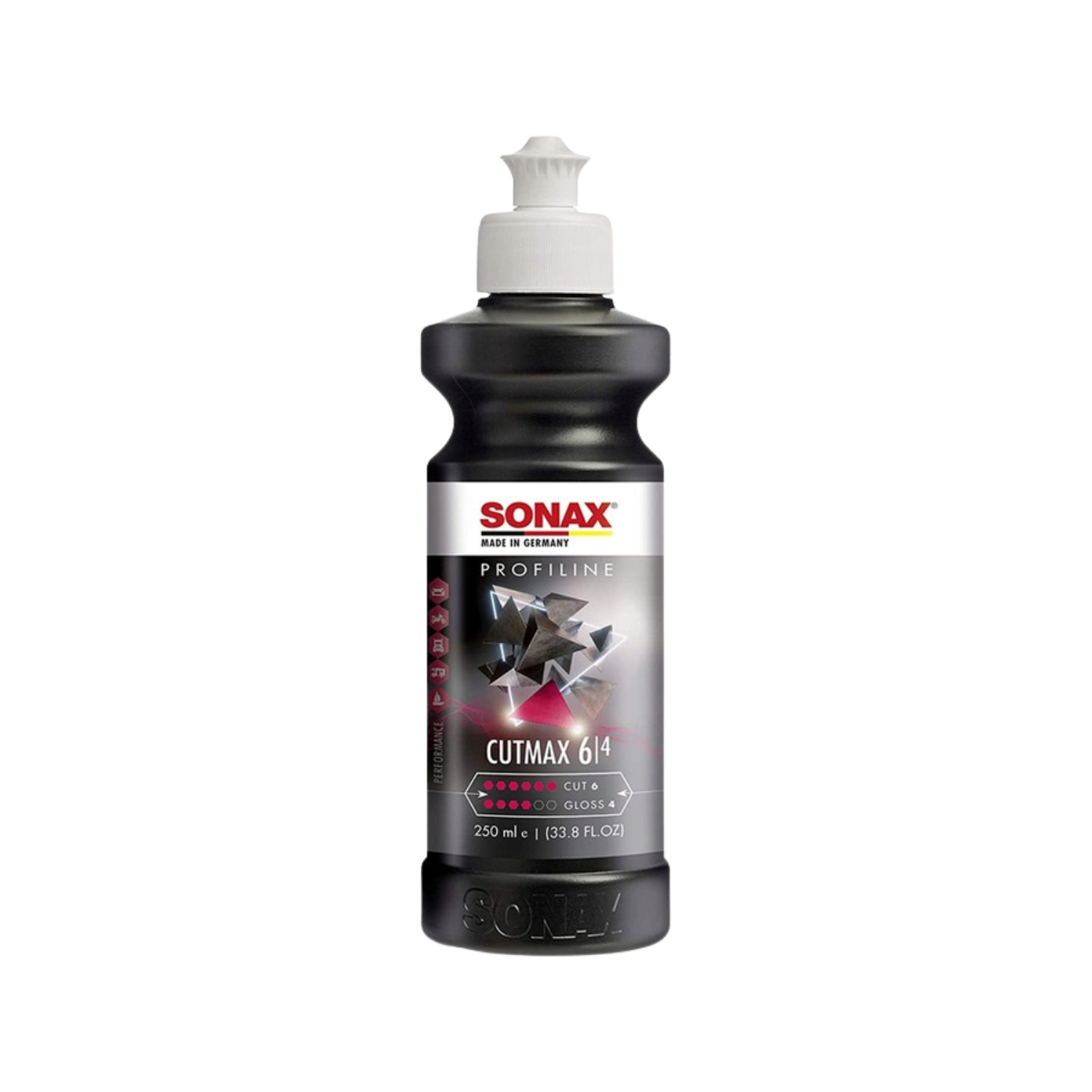- SONAX CutMax 06-04 to pasta polerska o maksymalnej sile cięcia. Skutecznie usuwa głębokie rysy, zmatowienia i ślady po papierze P1200, zapewniając czystą pracę bez pylenia i silikonów.