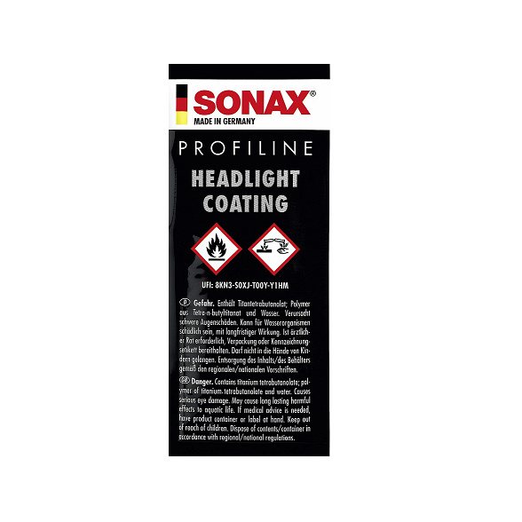 - SONAX Profiline Headlight Coating to ceramiczna powłoka chroniąca reflektory przed UV i zabrudzeniami. Łatwa aplikacja, trwałość do 12 miesięcy. Jedna saszetka = 2 reflektory.