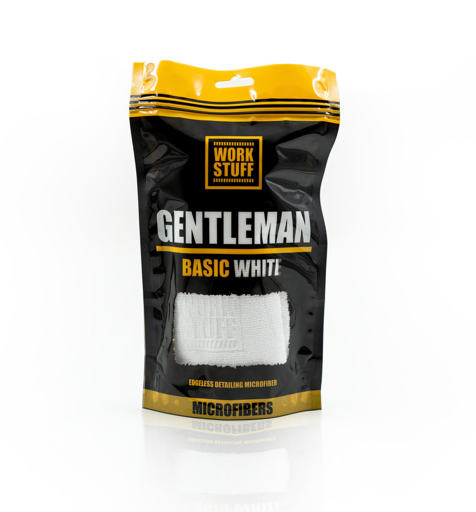 - Work Stuff Gentleman Basic White to delikatna mikrofibra pozbawiona obszycia na brzegach, wykonana z wysokiej jakości materiału. Dedykowana do pracy z powłokami, woskami, quick detailerami i innych prac wewnątrz i na zewnątrz samochodu.