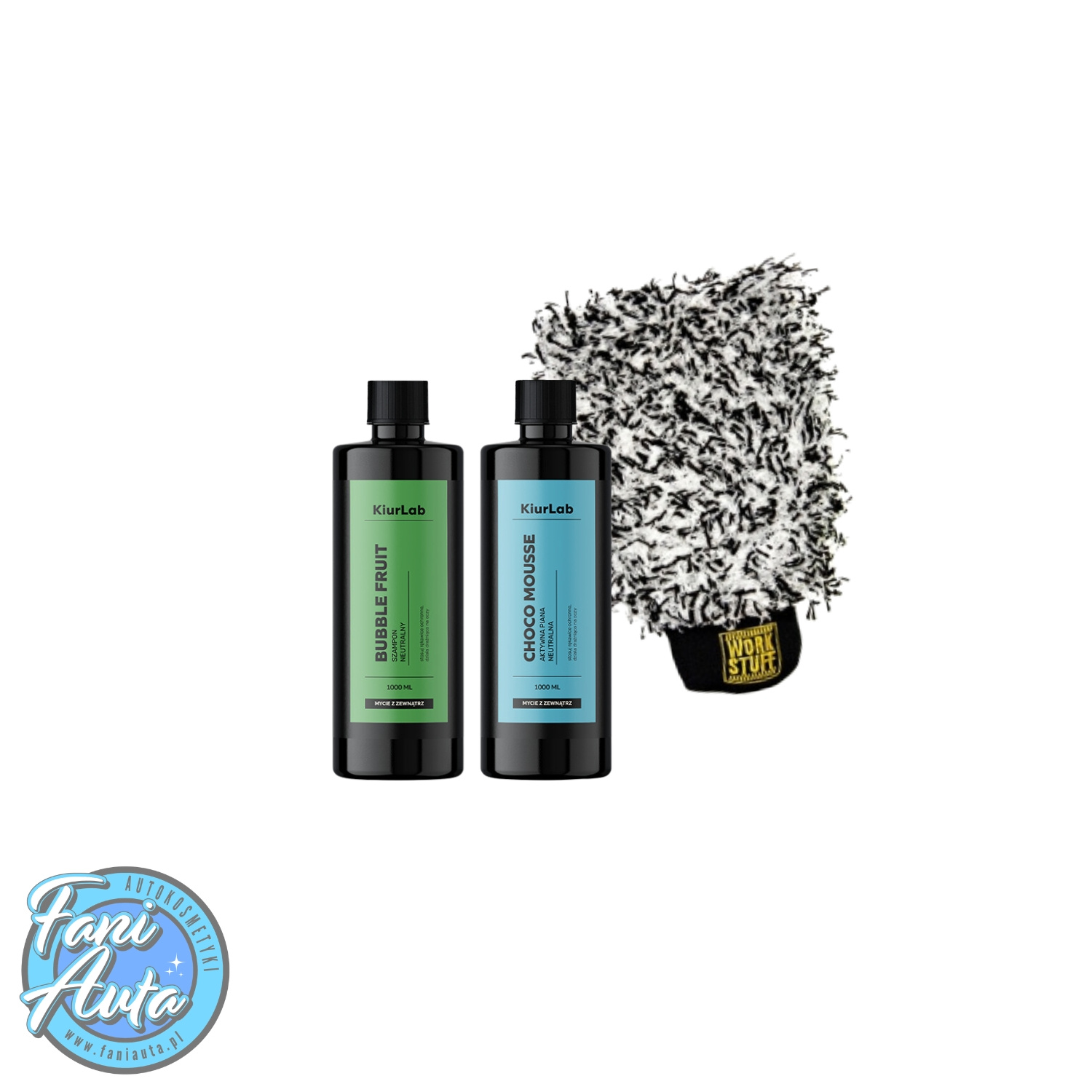 Zestaw do mycia auta – Kiurlab Choco Mousse 1L + Kiurlab Bubble Fruit 1L + Work Stuff Storm Wash Mitt