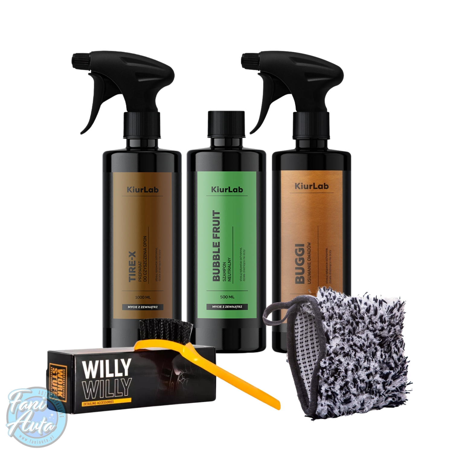 - Kompletny zestaw do mycia motocykla to praktyczne rozwiązanie łączące skuteczne produkty KiurLab z niezawodnymi akcesoriami Work Stuff. W zestawie znajdziesz szampon, preparat do usuwania owadów, środek do opon oraz rękawice i szczotkę do opon.