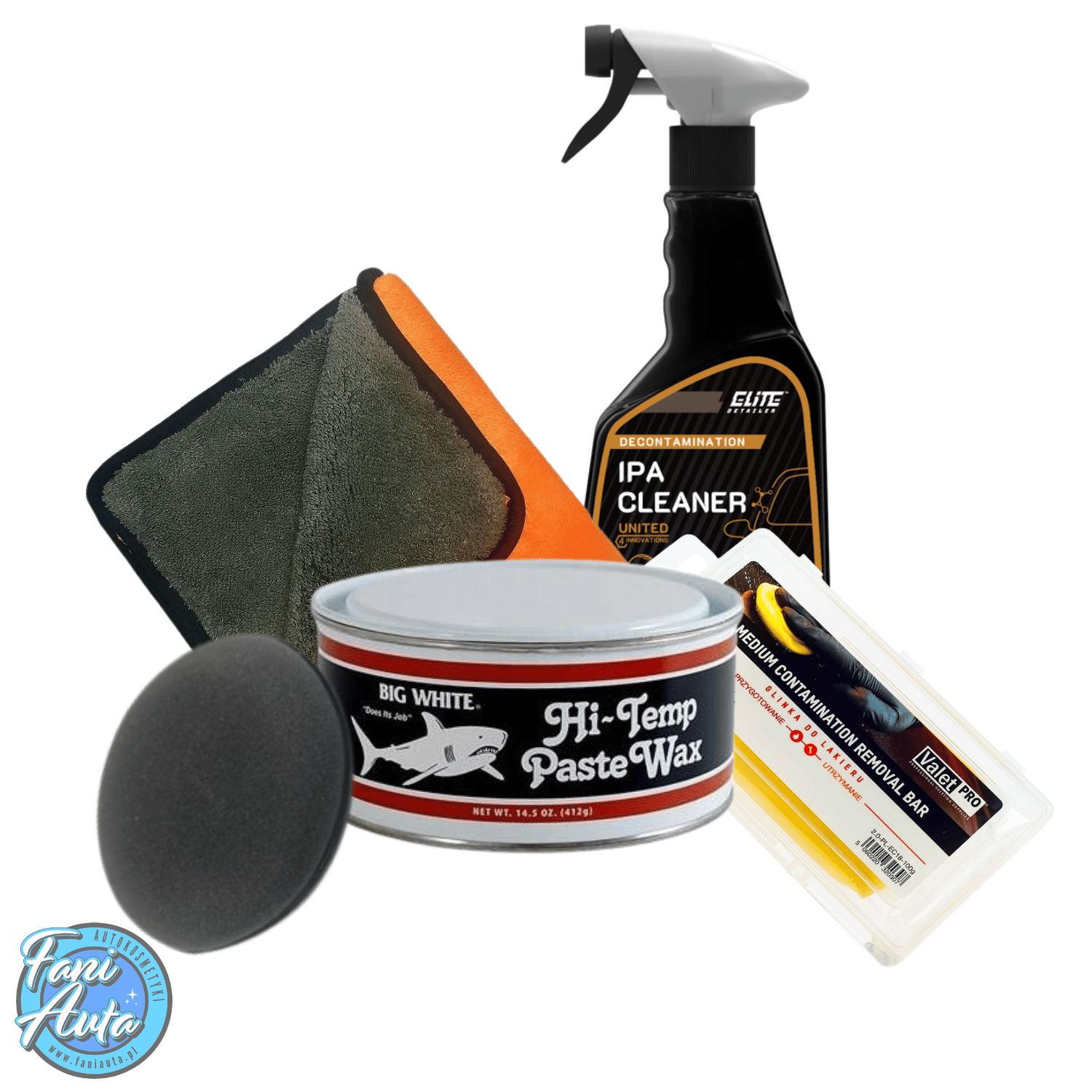 - Zestaw do kompleksowego przygotowania i zabezpieczenia lakieru, zawierający wosk Finish Kare 1000P, glinkę ValetPRO, IPA Cleaner, aplikator oraz mikrofibrę. Skutecznie oczyszcza powierzchnię, zapewnia długotrwałą ochronę i intensywny połysk.